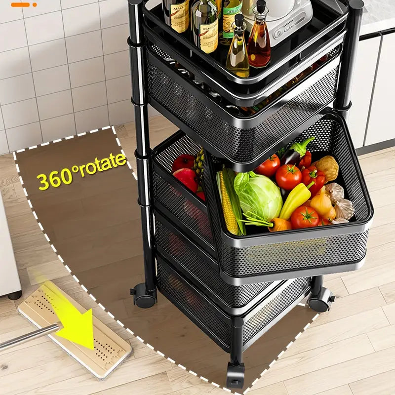The 6-Tier Square Vegetable Storage Rack offers a creative and stylish way to organise your fruits, vegetables, and kitchen essentials. Made from sturdy iron with a breathable basket design, it ensures your items stay well-ventilated and neatly arranged. The rotating shelves and smooth-sliding wheels provide easy access and mobility throughout your home.